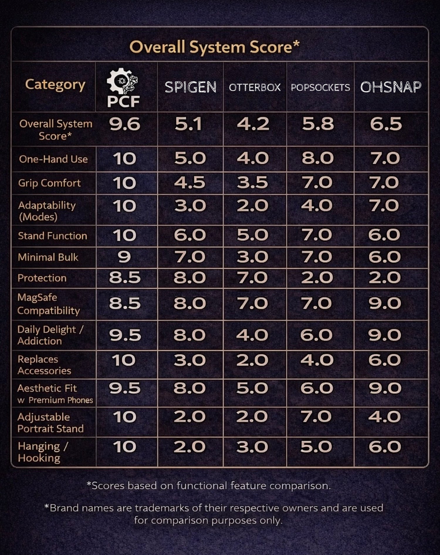 PCF™ integrates grip, stand, and control into one engineered system, while standard cases rely on bulky add-ons or compromises..